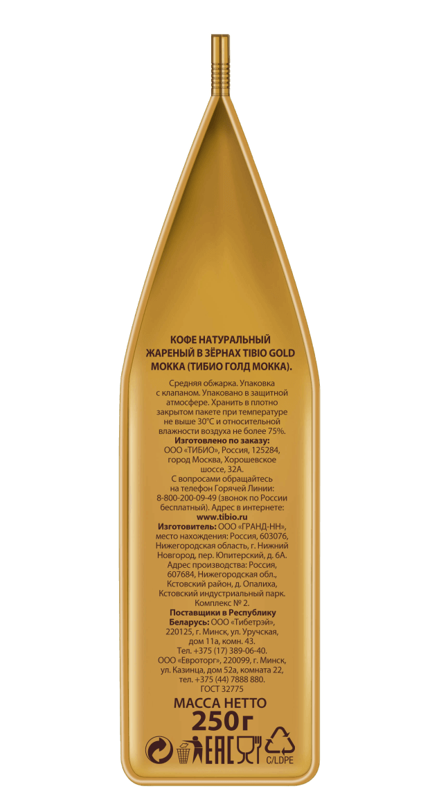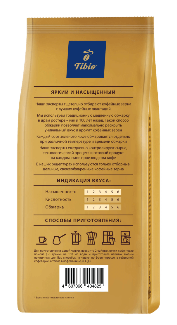 Отборные зерна Робусты с кофейных плантаций Азии придают кофе Tibio Gold Mokka насыщенный характер и полнотелый вкус с легкими терпкими нотками