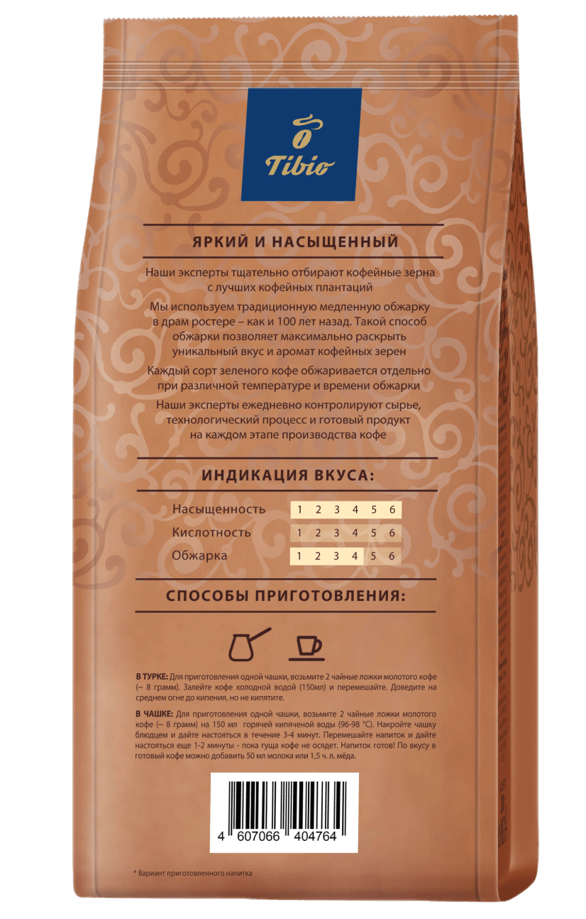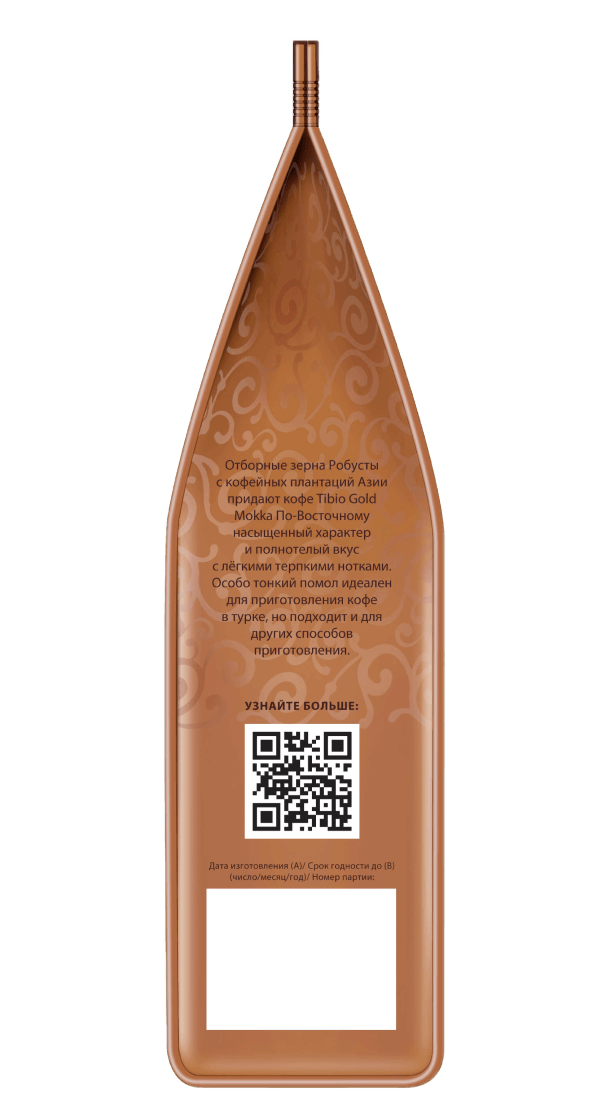 Отборные зерна Робусты с кофейных плантаций Азии придают кофе Tibio Gold Mokka насыщенный характер и полнотелый вкус с легкими терпкими нотками. Особо тонкий помол идеален для приготовления кофе в турке, но подходит и для других способов приготовления.
