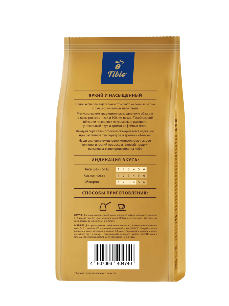 Отборные зерна Робусты с кофейных плантаций Азии придают кофе Tibio Gold Mokka насыщенный характер и полнотелый вкус с легкими терпкими нотками