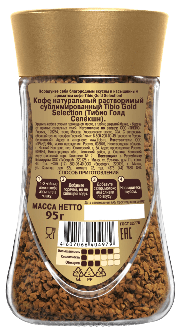 Порадуйте себя благородным вкусом и насыщенным ароматом кофе Tibio Gold Selection.