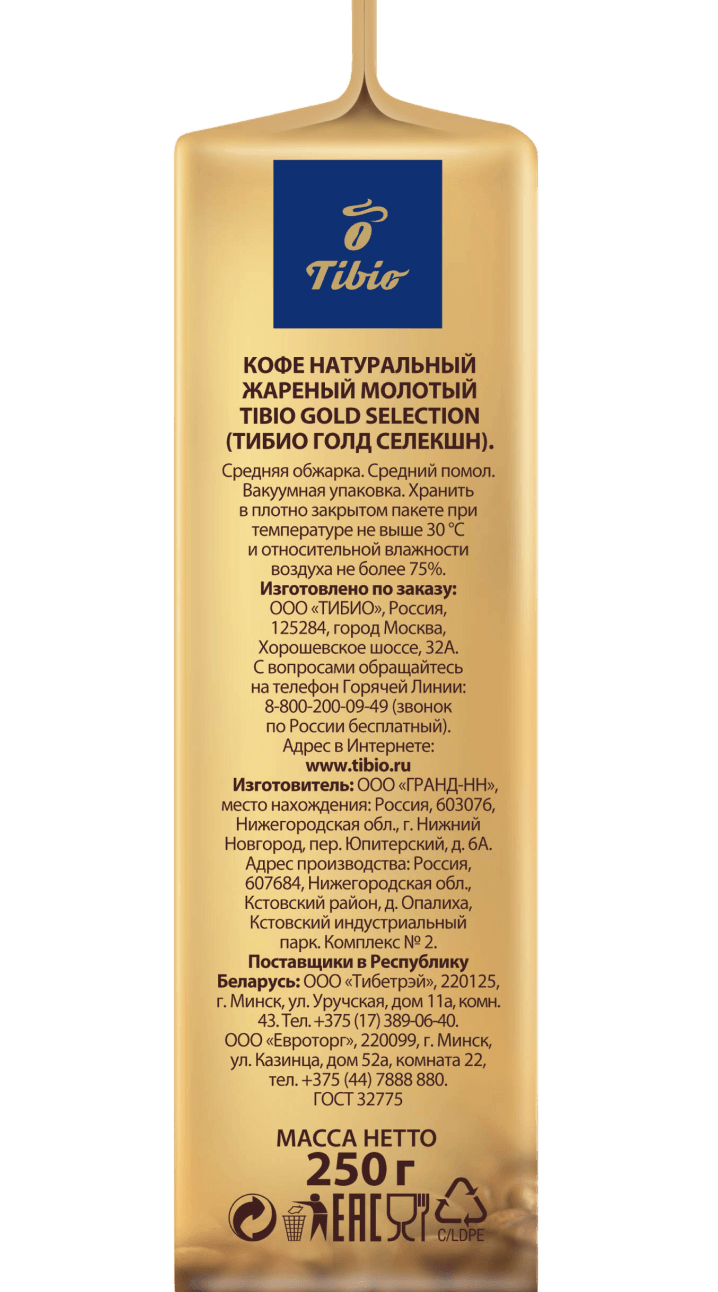 Порадуйте себя благородным вкусом и насыщенным ароматом кофе Tibio Gold Selection.